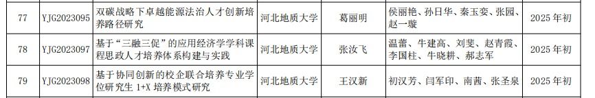 经项目负责人申请、学校审核、网上公示等程序,河北省教育厅批准BB贝博省级研究生教育教学改革研究项目结项。现将名单予以公布。