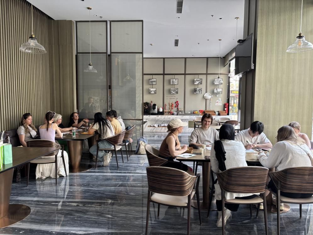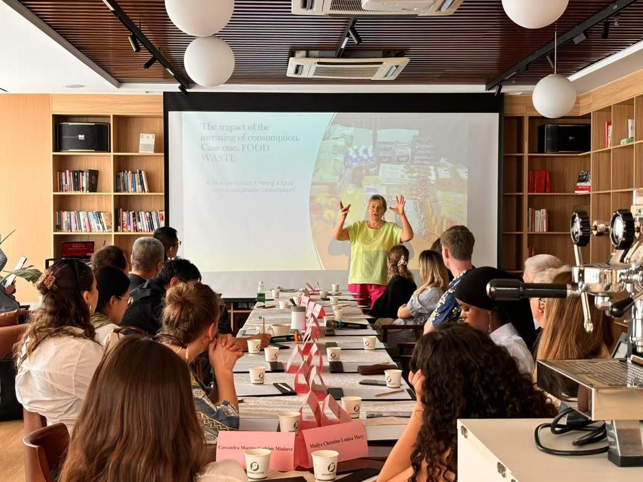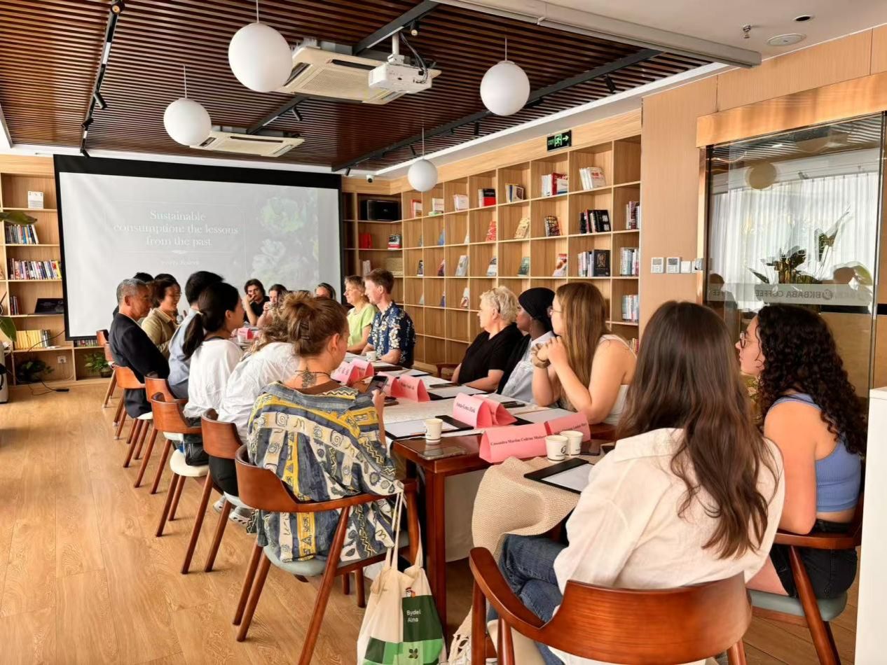 4月26日上午,双方举办了第二场学术研讨会,并邀请到中国社科院欧洲研究所研究员张敏和河北省教育厅国际交流处原一级调研员李守民参加。挪威奥斯福大学学院的Irina教授从复活节岛上人类活动消失案例引入联合国2030可持续发展目标中的可持续消费,反思人类消费行为的可持续性。其后中欧师生分为四组,就新能源汽车、快销品牌案例研讨什么是可持续消费,然后分组作总结发言,最后接受各位专家、教授的点评。这次活动在咖啡吧举行,也为挪威客人了解中国人餐饮休闲生活的多样性提供了一个新窗口。下午代表团参观正定隆兴寺体验石家庄的深厚历史底蕴,随后参观滹沱河沿岸生态治理工程和只照村,生态优美的滹沱廊道、热情奔放的战鼓表演、村集体经济发展模式、露营基地热情好客的庄里人等等,给师生代表团留下了难忘而美好的回忆。