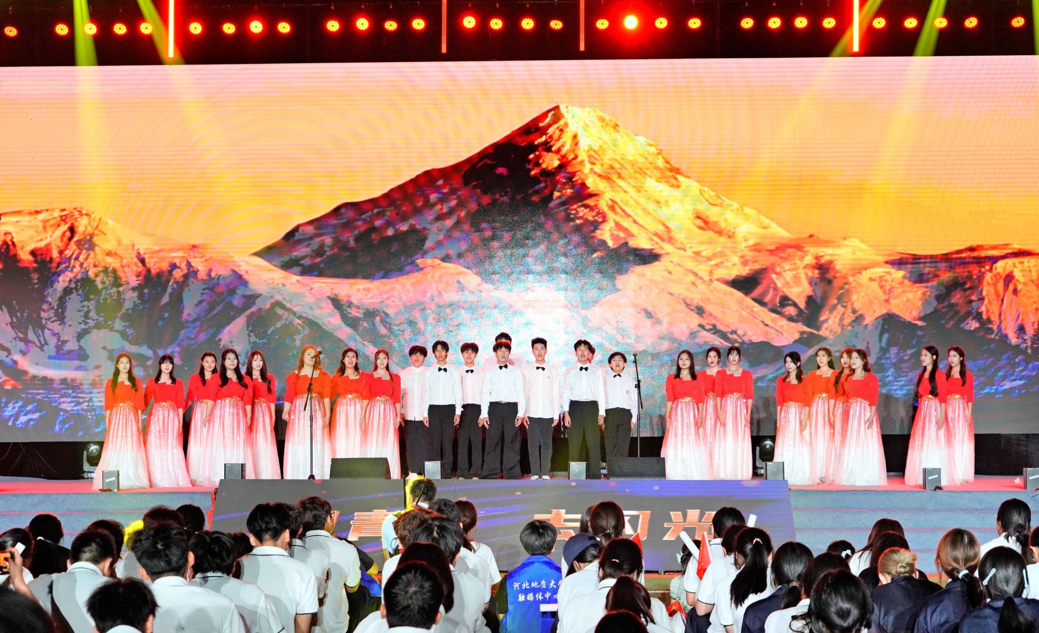 晚会以河北广播电视台“动感地带”《闪光的你》第三季启动仪式拉开序幕。水资源与环境学院同学们带来的啦啦操《向快乐出发》热情开场,瞬间点燃全场氛围。大学生艺术团接连献唱《第一天》《世界赠予我的》等歌曲,以青春旋律唱响对新生活的憧憬;民舞团表演的《山水吟》舞姿优美,展现地大人行走于祖国山河之间的深远意境;快板节目《七十年山海情》以幽默而深情的语言艺术,回顾学校七十余载峥嵘历程,传递了一代代学子对母校的深厚情感。礼仪模特团演绎《山河华章》,呈现了宝石与材料学院、艺术学院学子的设计作品及BB贝博博物馆矿石标本,将传统服饰之美与山水文化韵味相融合,气韵非凡。街舞《风火舞哪吒魂》凭借高难度动作和强烈节奏,诠释了无畏挑战、勇于突破的精神,将晚会推向高潮。拉丁舞团《旗韵凝香·舞芳华》巧妙融合拉丁舞与传统旗装,展现中西文化交融的别样风采。