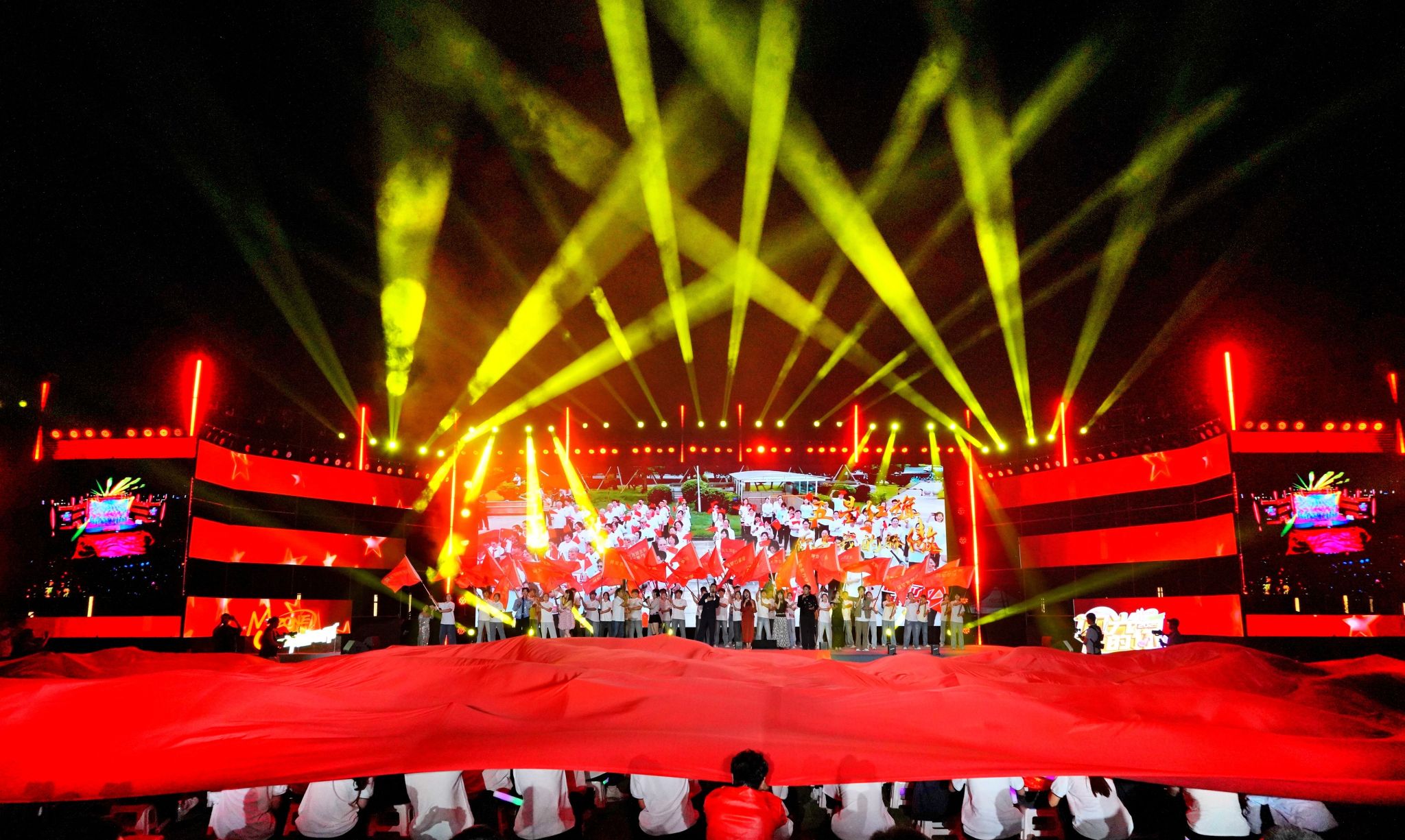 晚会最终在激昂深情的大合唱《我爱你中国》中圆满落幕。全场师生挥动国旗,齐声高歌,以歌声表达对祖国的热爱与祝福,为整场演出划上完美句号。