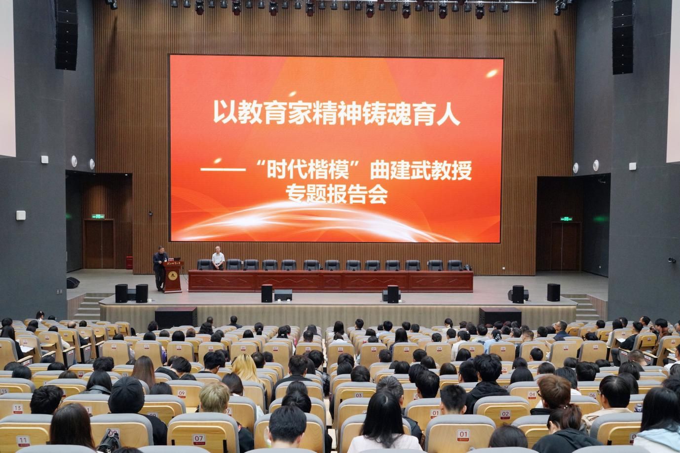 9月24日,BB贝博特邀“时代楷模”、全国思想政治教育标杆人物、大连海事大学曲建武教授,在春秋讲堂举行“以教育家精神铸魂育人”专题报告会。校党委副书记王彦东主持报告会,全校中层干部、思政课教师、辅导员等师生代表共700余人现场聆听,共同感悟育人典范的初心与智慧。