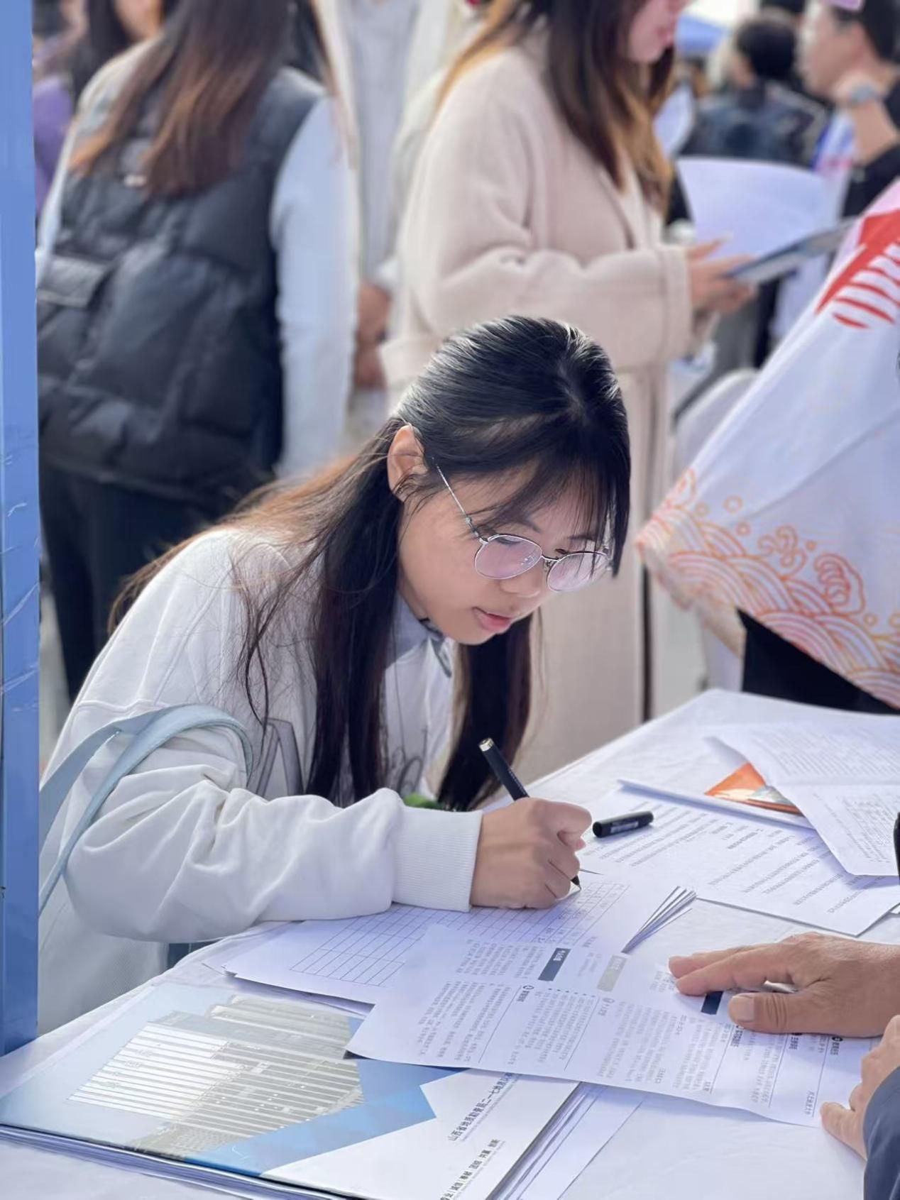 双选会现场特别设置了“一站式服务站”,为学生提供简历优化、面试指导、基层就业政策解读、征兵咨询及网络签约等服务,及时解答各类就业疑问,助力毕业生顺利求职。此外,130余名会务志愿者全程服务,分布于会场各区域,负责引导、咨询和秩序维护等工作,保障了活动有序进行。