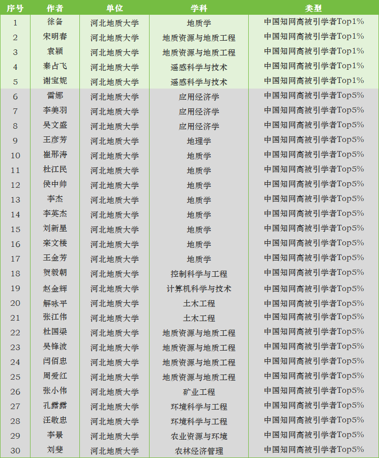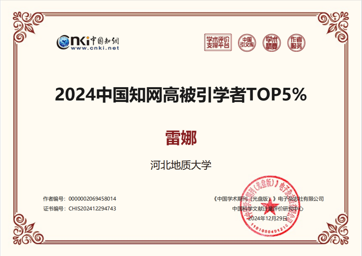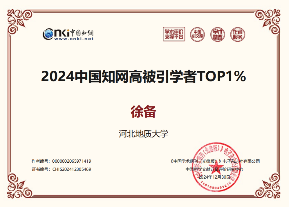 近日,中国知网中国科学文献计量评价研究中心公布了“2024中国知网高被引学者”预发布名单,BB贝博有30位教师入选。其中5位教师入选高被引学者Top1%,25位教师入选高被引学者Top5%,主要集中在地质学、地质资源与地质工程、遥感科学与技术、应用经济学等学科方向。