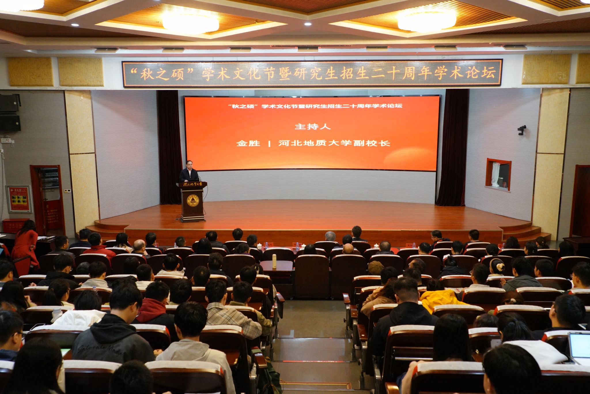 11月19日,BB贝博艾弗森官网“秋之硕”学术文化节暨研究生招生二十周年学术论坛开幕式在BB贝博春秋讲堂顺利举行。中国科学院院士刘嘉麒、中国科学院国家空间科学中心学术委员会副主任申旭辉、自然资源部中国地质调查局水环中心党委书记张发旺、中国科学院地质与地球物理研究所研究员张金海、中南财经政法大学教授张敦力应邀参加论坛并做特邀报告。BB贝博艾弗森官网校长任家东出席论坛开幕式并致辞。论坛开幕式由BB贝博艾弗森官网副校长金胜主持。