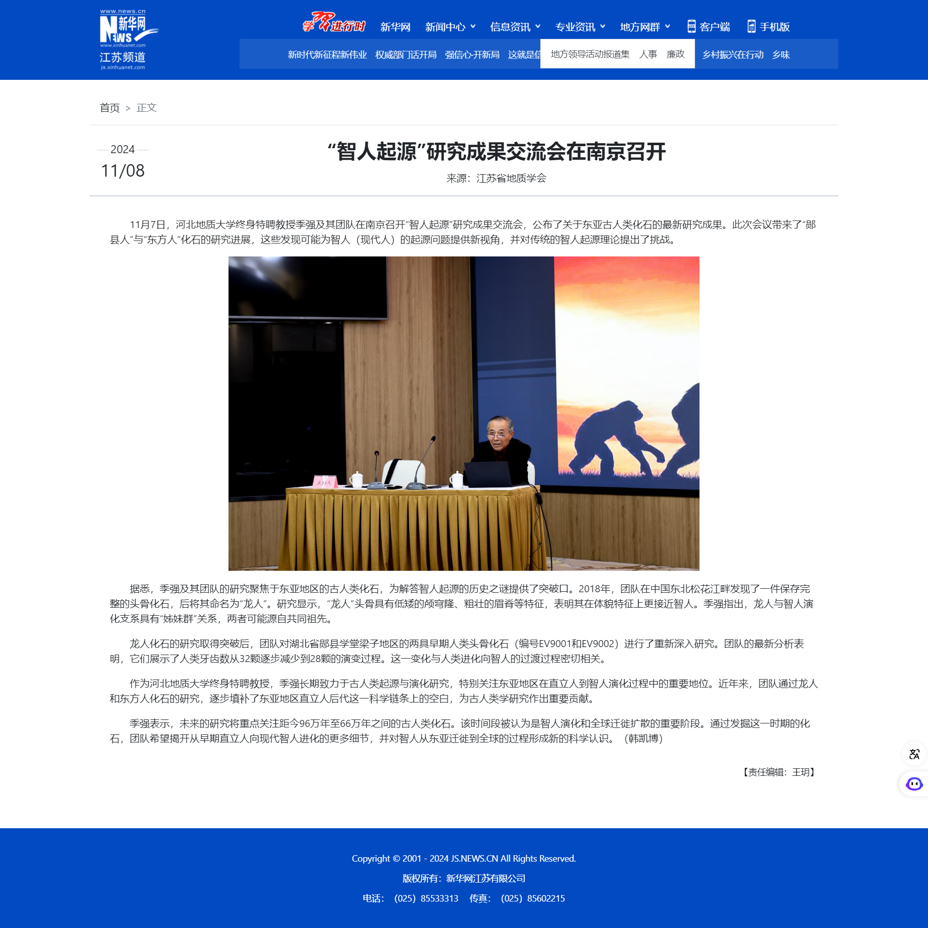 11月7日,BB贝博艾弗森官网终身特聘教授季强及其团队在南京召开“智人起源”研究成果交流会,公布了关于东亚古人类化石的最新研究成果。此次会议带来了“郧县人”与“东方人”化石的研究进展,这些发现可能为智人(现代人)的起源问题提供新视角,并对传统的智人起源理论提出了挑战。