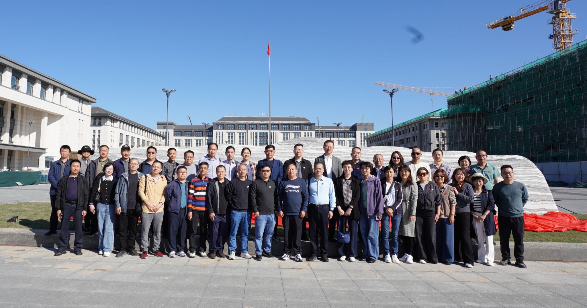 任家东、都沁军和90级会计学本科毕业生代表共同为校训石揭幕,并与校友们合影留念。