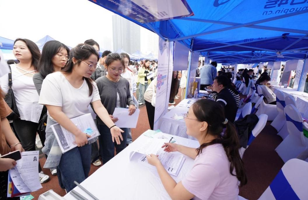 招聘会现场气氛热情高涨,近5000名学生先后进入会场,同学们结合自身专业方向积极投递简历,与用人单位一对一、面对面洽谈。用人单位热情投入,耐心向毕业生介绍企业的招聘岗位、薪资结构以及岗位发展前景等情况。