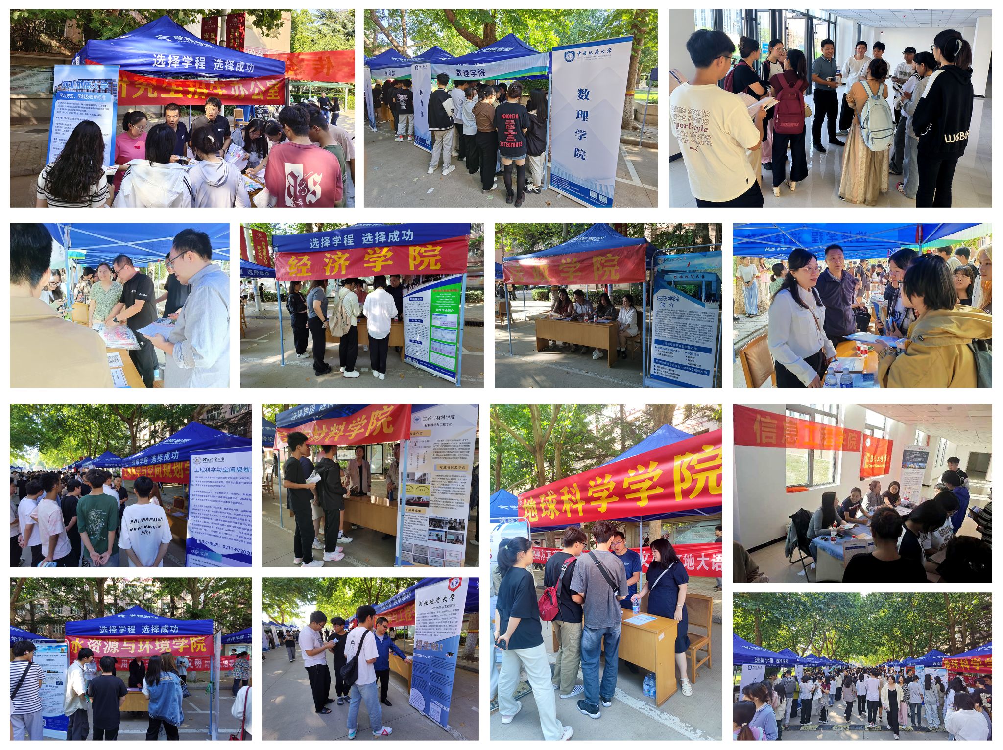 此次研招宣传会设在本部校区和新校区两个地点。校本部组织了地球科学学院、城市地质与工程学院、法政学院、经济学院、宝石与材料学院、土地科学与空间规划学院、水资源与环境学院、数理教学部、语言文化学院、艺术学院、体育教学部和中国地质大学(北京)的15个相关单位共同参加活动。管理学院、信息工程学院则携手中国地质大学(北京)的两个相关学院在新校区共同参加了此次活动。