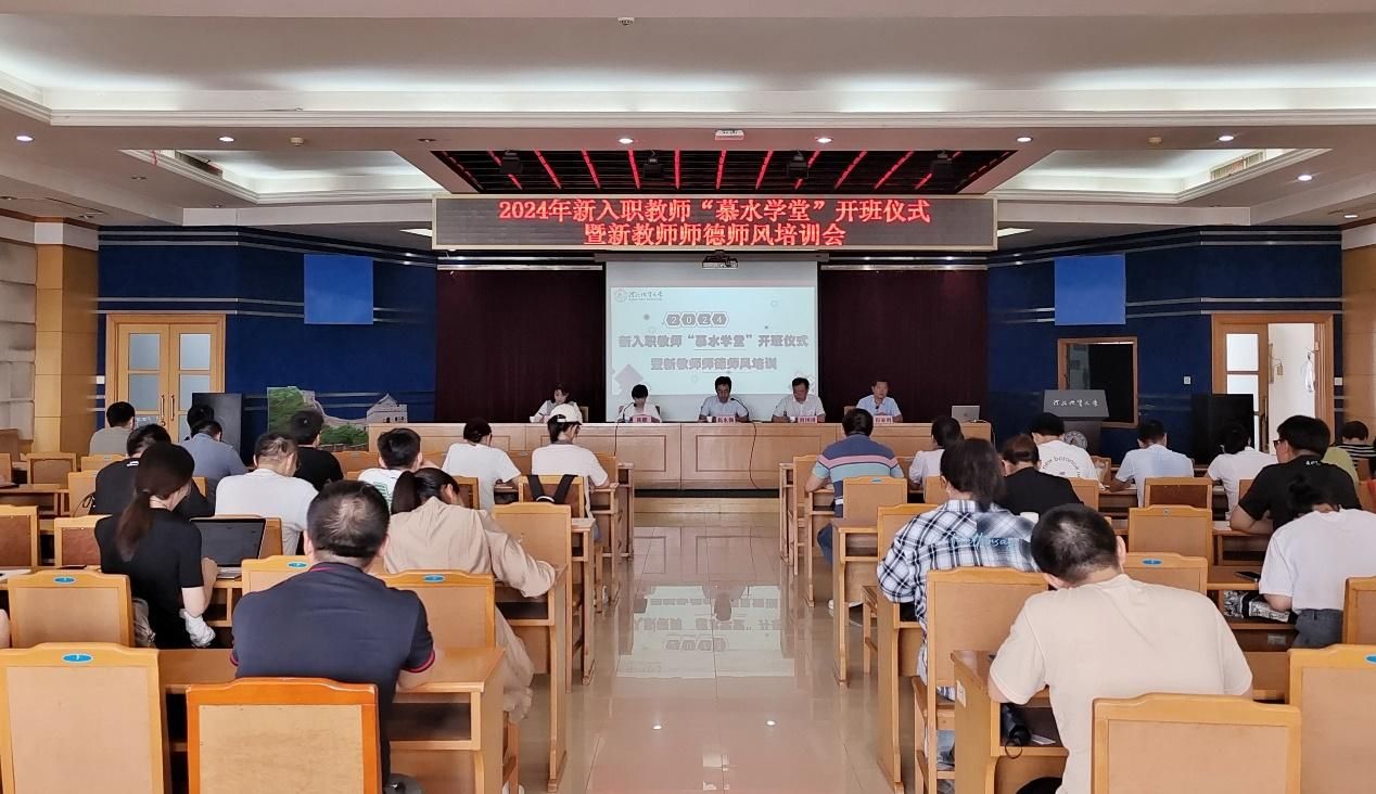 9月20日上午,2024年新入职教师“慕水学堂”开班仪式暨新教师师德师风培训会在教学一号楼九楼报告厅举行,副校长赵永强出席开班仪式。教育部首批“全国高校黄大年式教师团队”带头人、河北省教学名师尚国琲,教师发展者代表田亚明,七十余名新入职教师及高教研究中心(教师培训中心)全体人员参加了本次会议。启动仪式由高教研究中心主任陈娜主持。