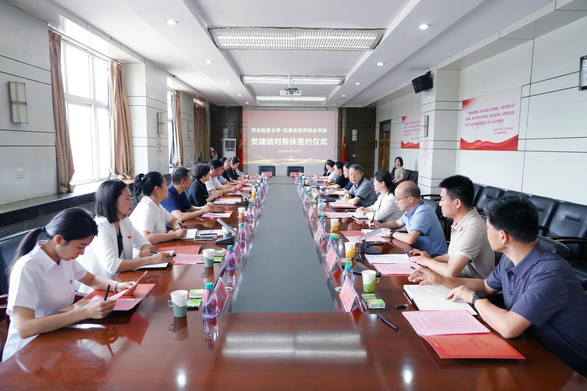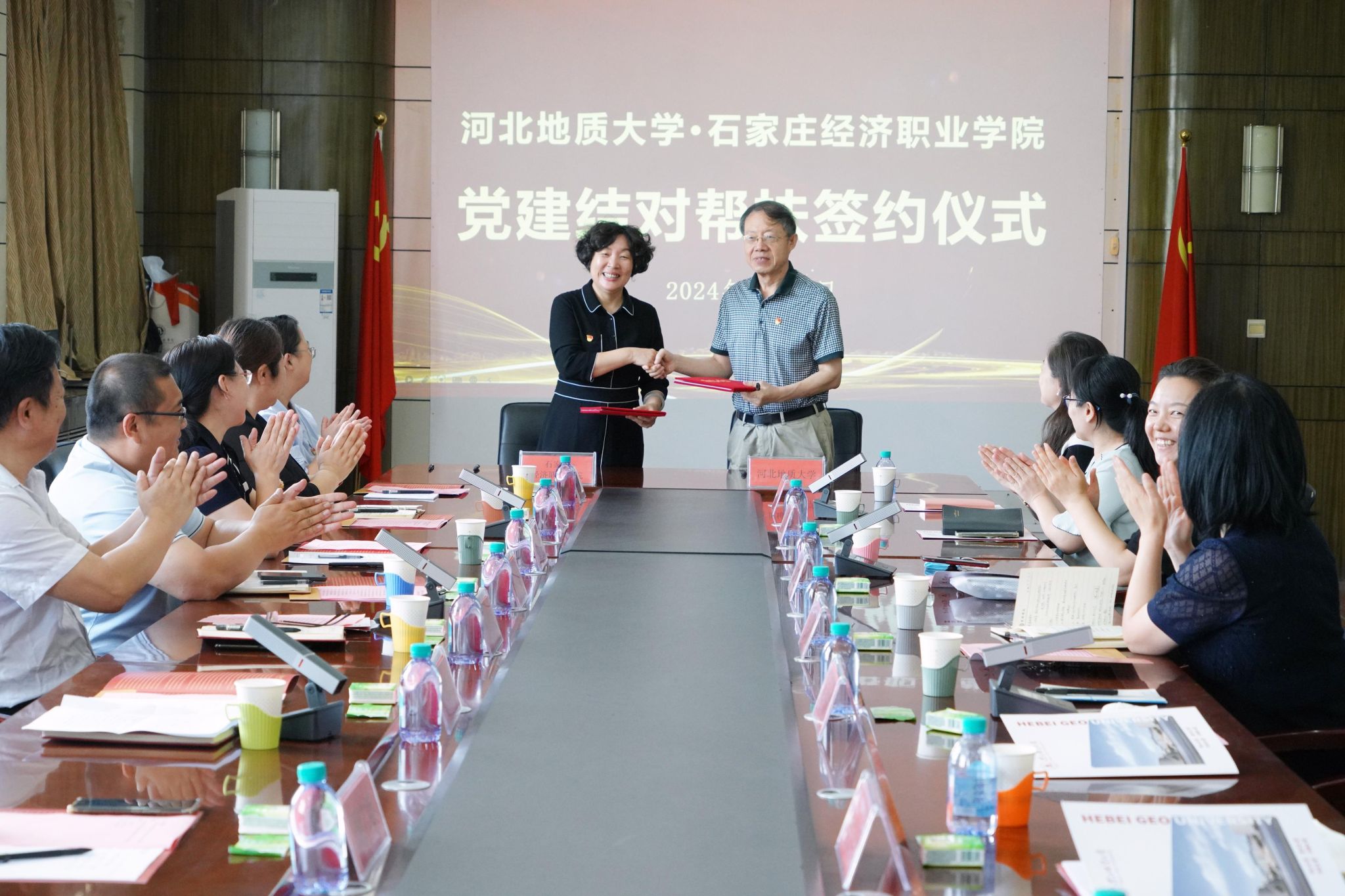 6月27日上午,BB贝博与石家庄经济职业学院在4楼会议室共同签署了党建结对帮扶协议。校党委副书记侯书文、石家庄经济职业学院党委书记贾喜环,双方党委组织部、结对的基层党组织负责人参与签约仪式。校党委组织部副部长冯天明主持会议。