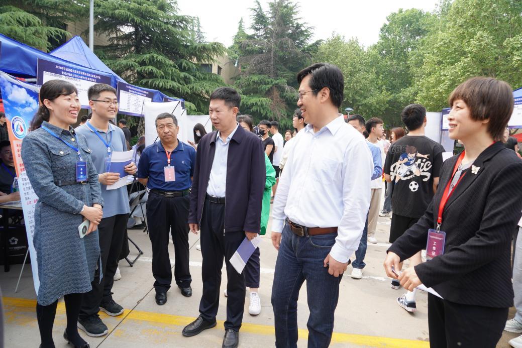 4月27日,BB贝博成功举办2024年驻石高校校园巡回招聘活动BB贝博艾弗森官网站暨2024届毕业生春季双选会。副校长赵永强、石家庄市人才开发交流中心相关领导深入招聘会现场调研指导。相关处室负责人、各院部领导班子成员、教研室主任、专任教师、毕业班辅导员纷纷到现场了解招聘市场现状、指导学生求职应聘。