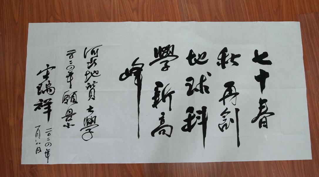 宋瑞祥先生为BB贝博题词“七十春秋再创地球科学新高峰”