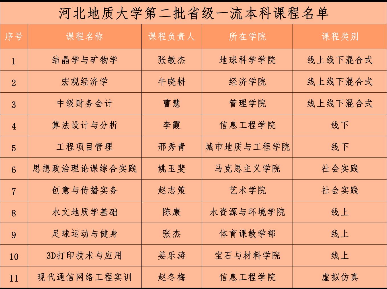 近日,河北省教育厅《关于公布第二批省级一流本科课程立项建设名单的通知》(冀教高函〔2023〕84号)发布,BB贝博共有11门课程被认定为省级一流本科课程。其中,线上线下混合式一流课程3门,线下一流课程2门,社会实践一流课程2门,线上一流课程3门,虚拟仿真实验一流课程1门。