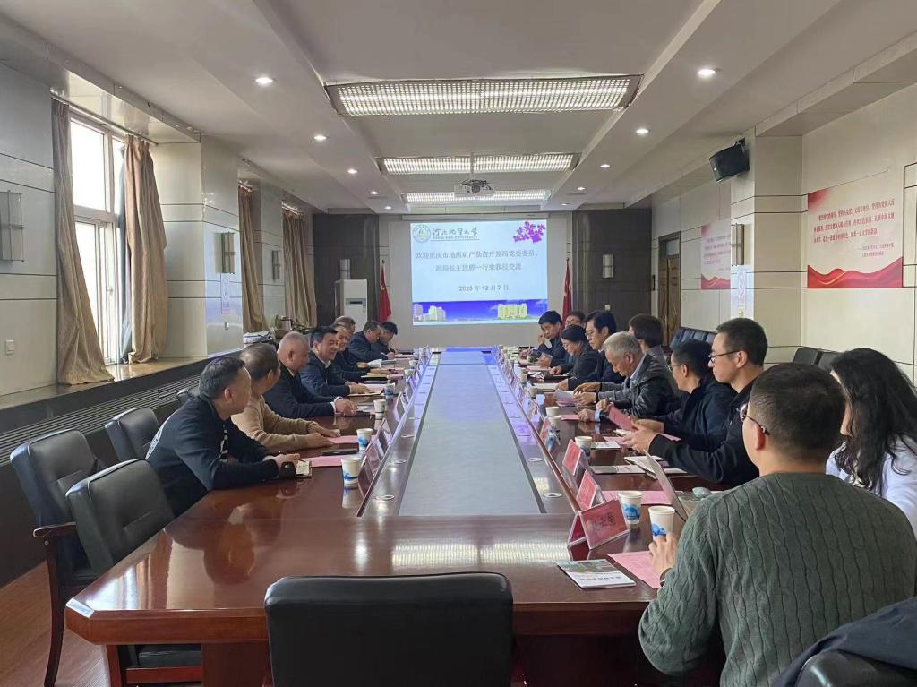 王旌骅对学校的热情接待表示感谢,并重点介绍了重庆市地质矿产勘查开发局发展历程、局情局貌和来校交流的背景和目的。重庆市地质矿产勘查开发集团有限公司党委书记、董事长陈戴林介绍了集团整体情况、业务板块、重点发展方向和人才的需求情况。重庆市地质矿产勘查开发局下属各地质队也分别就各自重点发展领域和人才需求进行了介绍。与会双方重点就建立实习实践基地、人才招聘、科研项目合作等方面展开了深入交流并达成了初步合作意向。