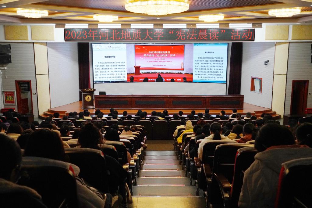 为做好BB贝博学生宪法法治教育主题活动,12月4日上午,BB贝博在春秋讲堂设立分会场,组织各学院学生代表参加了教育部组织开展的2023年国家宪法日教育系统宪法晨读活动、《宪法伴我们成长》歌曲传唱等活动,参会代表通过教育部全国青少年普法网集体收看“宪法晨读”活动网络直播,同步跟读,共同学习宪法知识;与北京主会场同步进行了庄严的升旗仪式、合唱歌曲《宪法伴我们成长》,同学们从歌声中体会宪法的温度、感受宪法的力量。