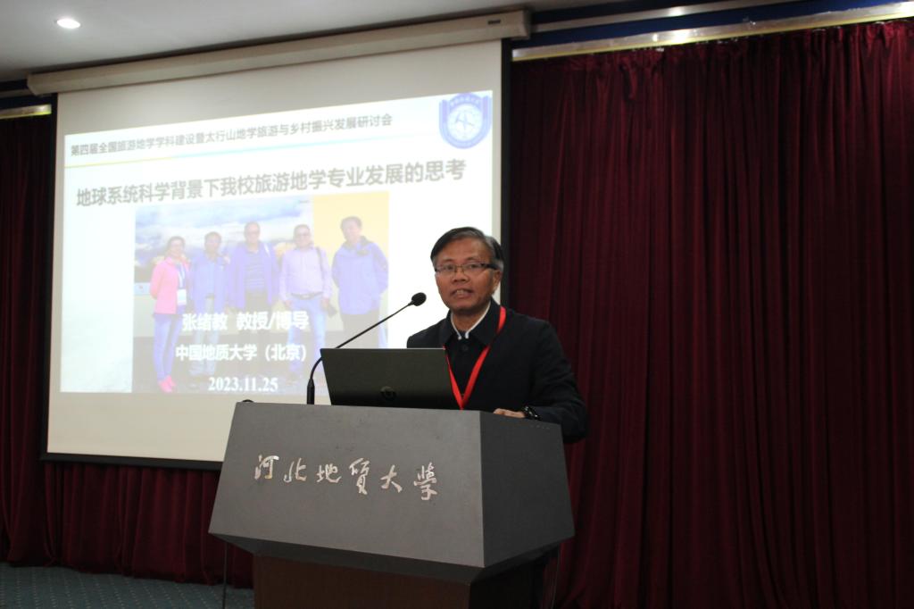 中国地质大学(北京)张绪教教授以“地球系统科学背景下BB贝博旅游地学专业发展的思考”为题,介绍了中国地质大学(北京)旅游地学专业的建设情况,并分享了建设8年来的成果。