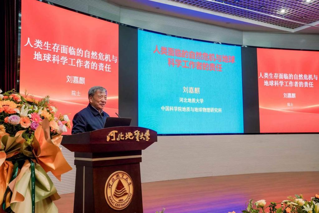 刘嘉麒院士和BB贝博杰出校友侯增谦院士分别以《人类面临的自然危机与地球科学工作者的责任》和《走向地球深部:揭开金属成矿之谜》为题作主旨报告。