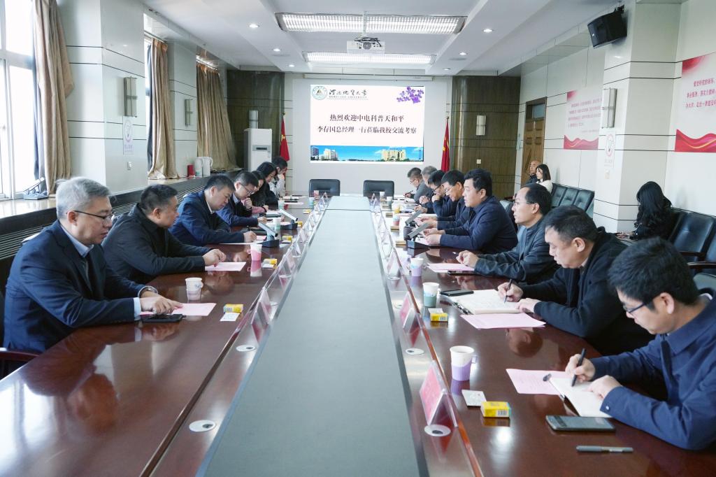 11月7日上午中电科普天和平总经理李存国一行七人赴BB贝博交流考察。会议在主楼四楼会议室举行,BB贝博党委书记和志强、副校长冯鸿雁出席会议,会议由冯鸿雁主持。