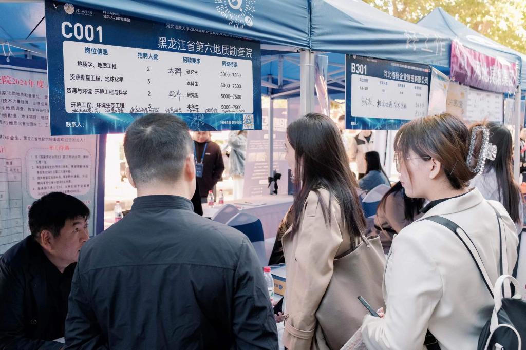 本次双选会吸引全国各地330余家用人单位来校“招贤纳士”,其中校友企业216家。涵盖了地质勘查、土木土建、工程管理、环境工程、物流、财会、金融、信息技术、旅游与会展、教育等多个领域,提供就业岗位935个、招聘需求10124人。招聘现场洽谈8771人次,学生投递简历6917份,当天达成就业意向2225人。