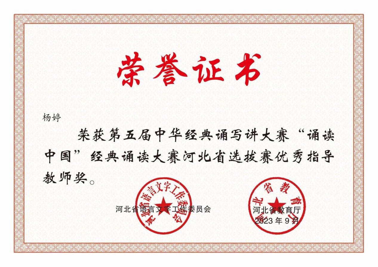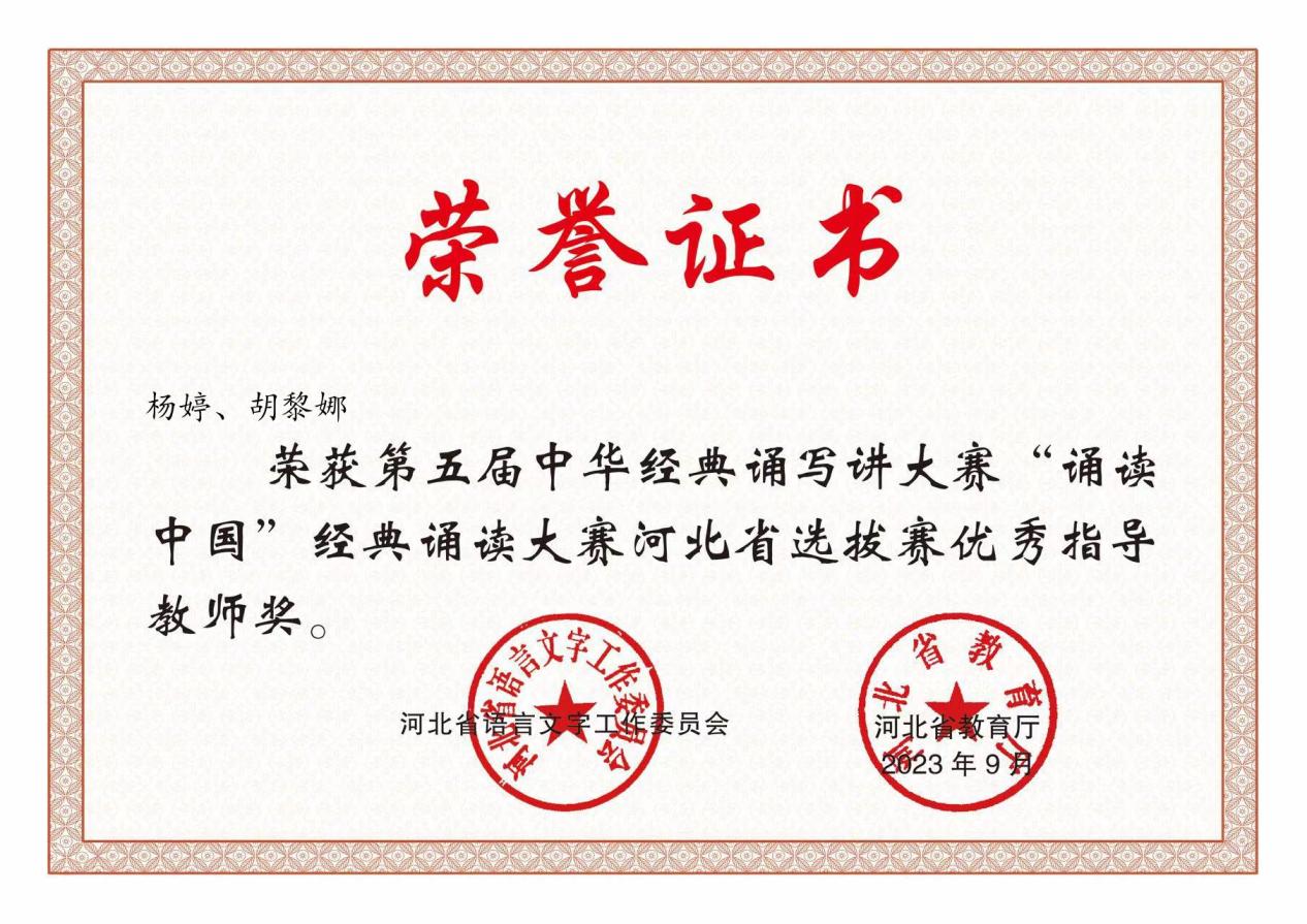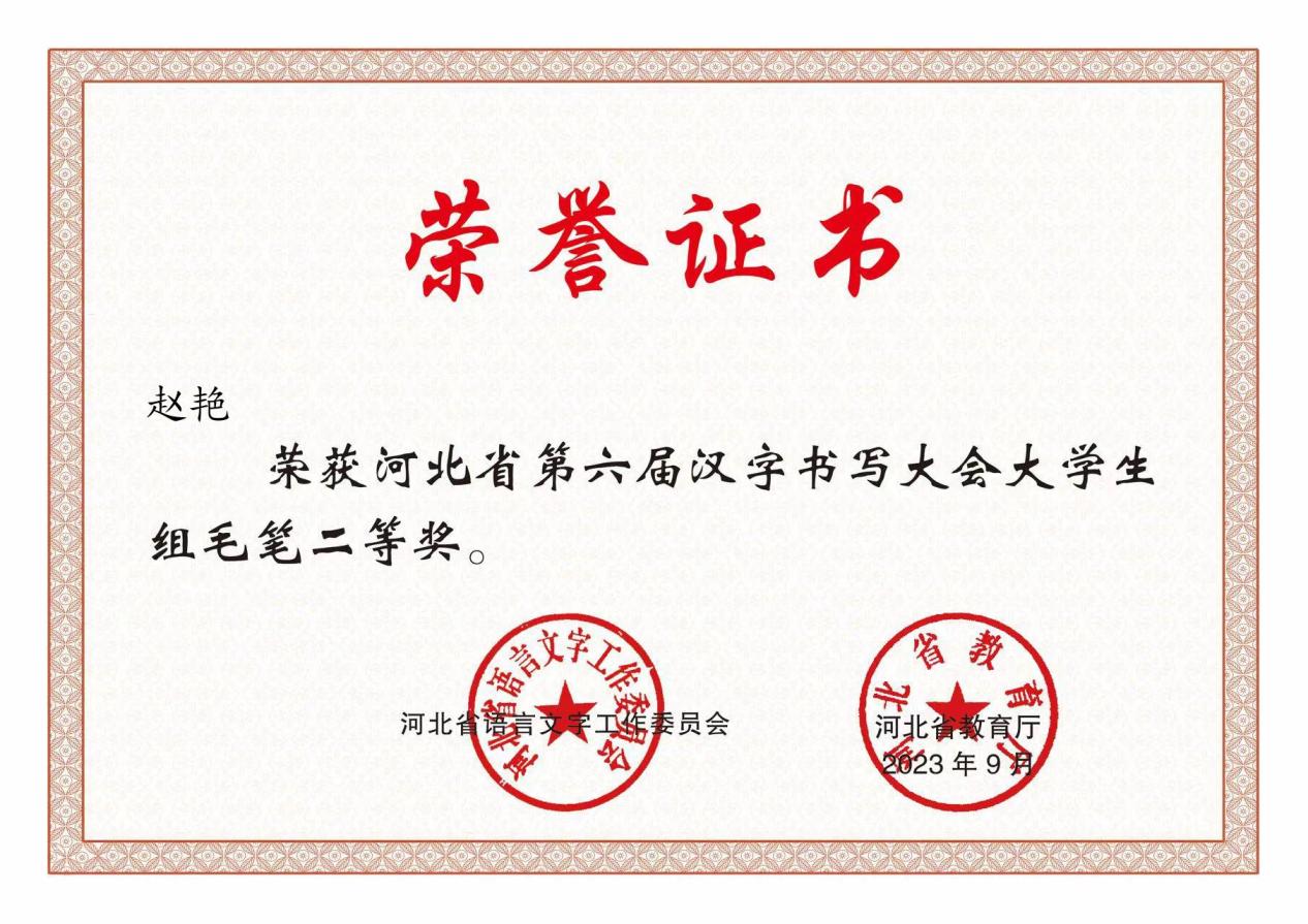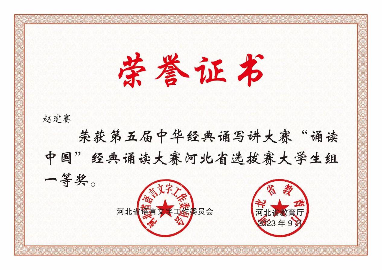 近日,由河北省语言文字工作委员会、河北省教育厅主办的第五届中华经典诵写讲大赛“诵读中国”经典诵读大赛及“笔墨中国”汉字书法大赛河北省选拔赛暨河北省第六届汉字书写大会获奖名单公布,BB贝博师生报送的作品取得优异成绩。学生赵建赛的诵读作品《月光下的中国》和罗佳欣、王怡萌、郑皓阳的诵读作品《永不消逝的声音》,分别获得第五届“诵读中国”河北省选拔赛大学生组一等奖和三等奖;指导教师杨婷、胡黎娜获得第五届“诵读中国”河北省选拔赛优秀指导教师奖。学生赵艳的书法作品《祭侄文稿》获得河北省第六届汉字书写大会大学生组毛笔二等奖;指导教师苏道玉获得河北省第六届汉字书写大会优秀指导教师奖。