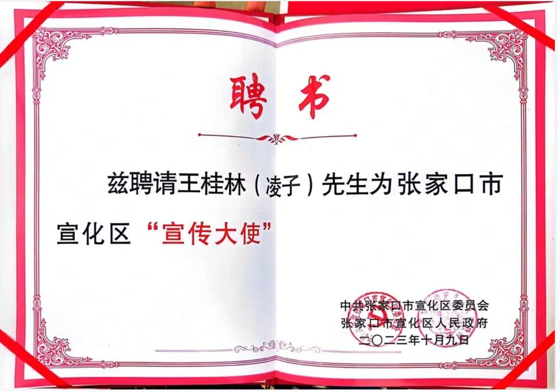 张聪代表宣化区委区政府向凌子颁授宣化区“荣誉市民”和“宣传大使”证书并赠送了纪念品。