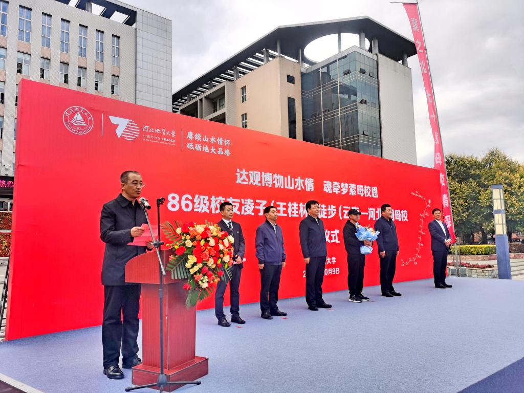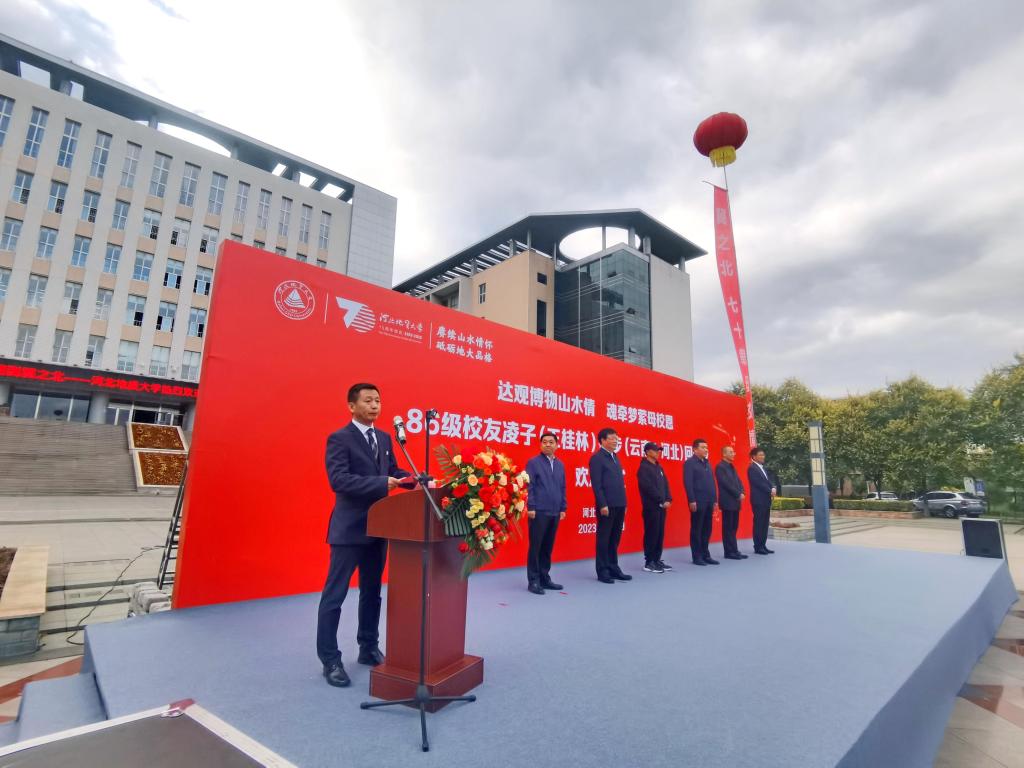 宣化区委书记张聪致辞,他表示,宣化这片热土对于广大地大校友来说都是难以割舍的青春,虽已毕业多年,但始终铭记“达观博物”的庄严校训,把在宣化学到的理论知识献给祖国的大好山河,以火焰一般的热情、背起初心使命的行囊,以丰饶地质宝藏为祖国献礼。本次凌子徒步返宣之旅,不仅彰显了以王桂林先生为代表的BB贝博艾弗森官网校友对母校的深切情怀,同时借此机会,在全国范围内宣传了宣化和河北地大的深厚情谊,意义非凡、影响深远,值得每个宣化人深深铭记!