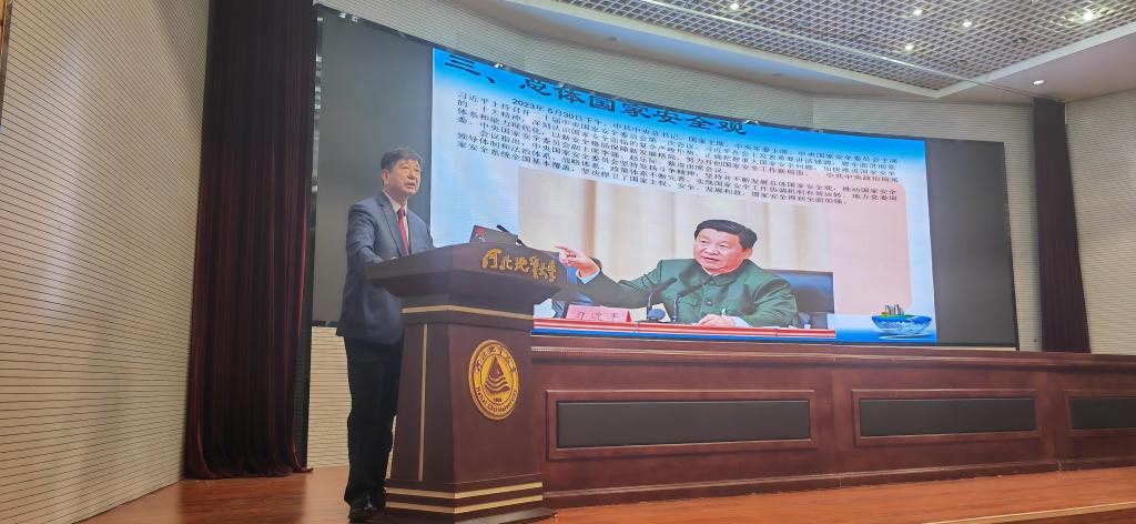 为深入学习贯彻习近平强军思想和总体国家安全观,引导广大青年学生进一步了解国家安全形势,增强国防教育观念,9月18日下午,2023河北省第三届军事科技国防教育大讲堂BB贝博艾弗森官网专场活动在BB贝博春秋讲堂举行。中国人民解放军军事科学院原战略部研究员姜春良将军出席报告会,并为到场师生做了题为《国际形势及中美战略博弈》的国防教育报告,报告会由副校长王滨主持。