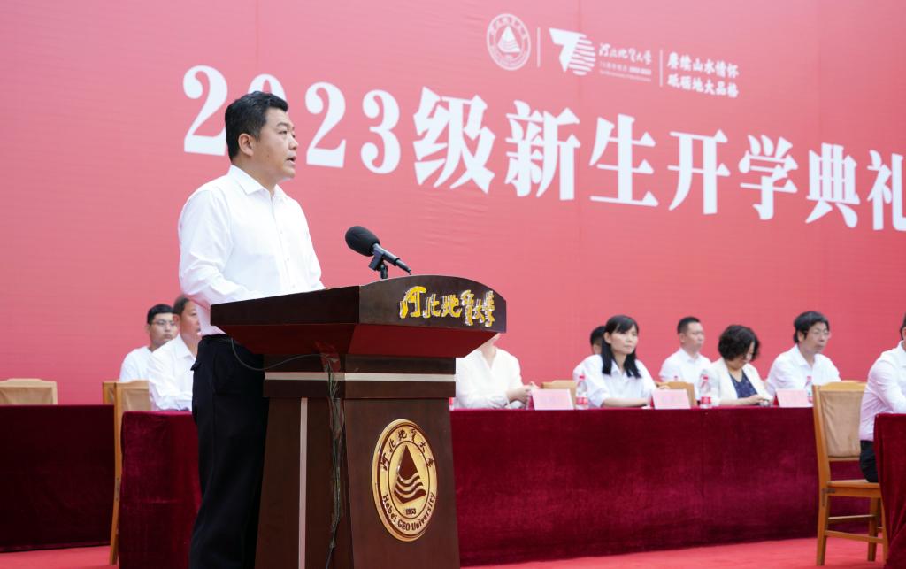 新的起点孕育新的希望,新的征程铸就新的辉煌。今天,2023级全体新生将怀抱理想,扬帆起航,开启人生的新篇章。希望你们牢记校长的嘱托、老师的祝福、学长的期盼;秉承“达观博物”之校训,传承“‘双地’办学”之理念,努力成为国家和社会有用的人才,在河北地大书写属于自己的精彩人生。