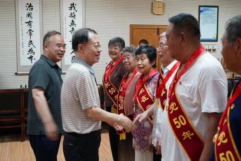 侯书文表示,在庆祝建党102周年的重要时刻,党中央向老党员颁发“光荣在党50年”纪念章,充分体现了以习近平同志为核心的党中央对老党员的尊重、关心和爱护,是对全体老党员的最高礼赞,也是全校党员的荣光。各位老党员、老同志在各自岗位上勤勤恳恳、默默奉献,坚定理想信念,忠诚党的教育事业,践行党的宗旨,用汗水和智慧助力学校70年发展改革稳定,树立了先进典型、凝聚了榜样的力量。希望老党员、老同志珍视这份荣誉,始终牢记党员身份,不忘入党初心,牢记铮铮誓言,弘扬优良传统、赓续红色血脉,讲好党的故事、地大故事,继续关心和守护学校年轻一代师生健康成长,继续一如既往为学校发展建言献策,为学校教育事业发展贡献力量。