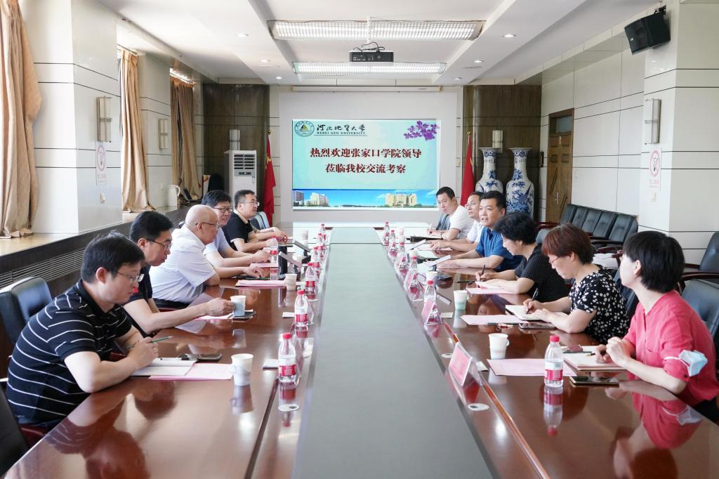 张俊贵详细介绍了张家口学院的专业设置、办学特色等情况,并就今后在深化产教融合、科学研究、人才引进、社会服务等方面的交流合作表达了期盼。