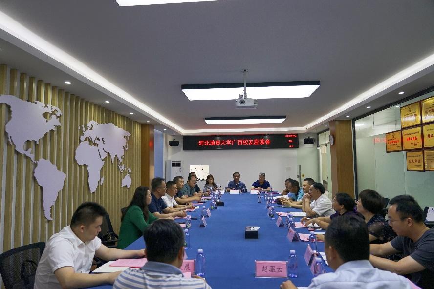 调研组一行得到广西各调研单位领导和校友的热烈欢迎。BB贝博校友、广西自然资源厅副厅长黎修旦,BB贝博校友、广西大数据局副局长韦江,广西地矿局总工程师徐初来,BB贝博校友、广西地矿局二级巡视员梁焕文,广西地调院党委书记、院长王新宇,广西第四地质队队长李忠阳,BB贝博校友、广西矿业协会秘书长朱真等出席调研组座谈会。