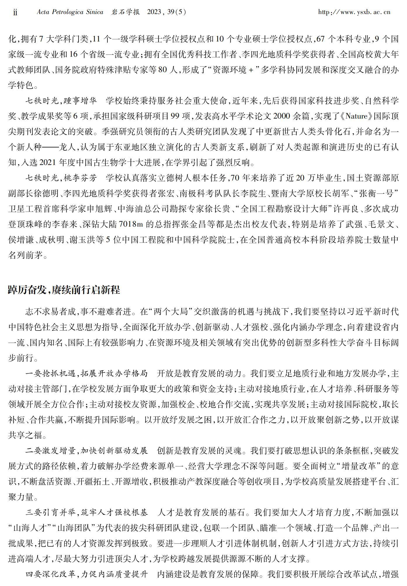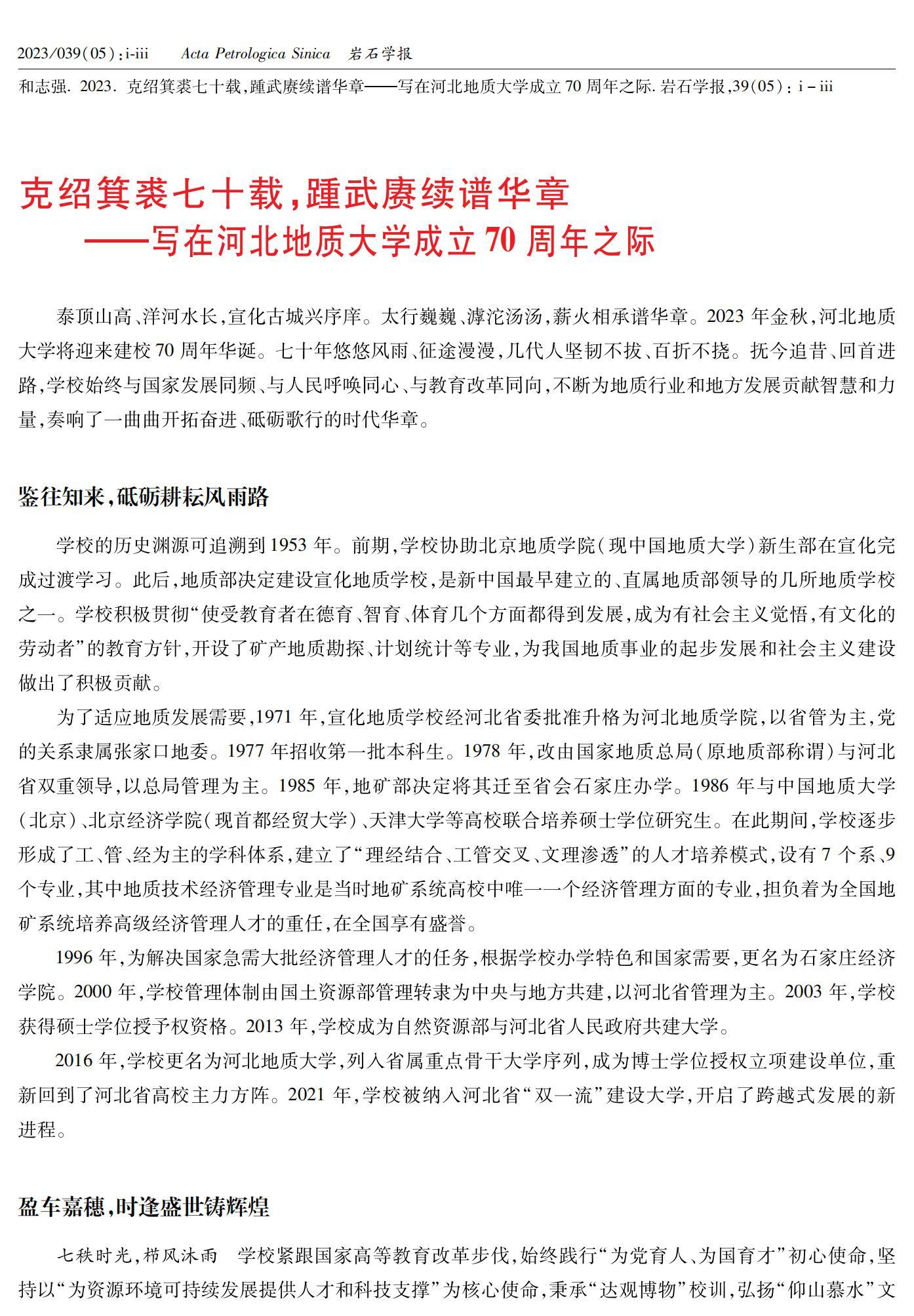 BB贝博艾弗森官网校长和志强在《岩石学报》杂志发表署名文章《克绍箕裘七十载,踵武赓续谱华章——写在BB贝博艾弗森官网成立70周年之际》。