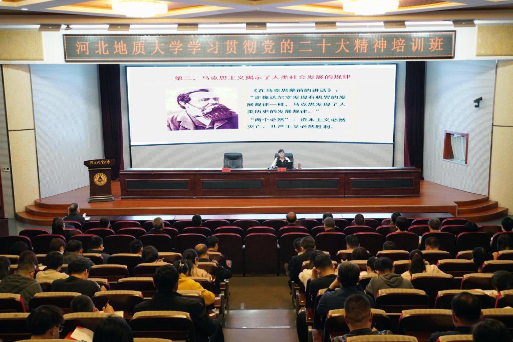 3月30日下午,BB贝博艾弗森官网学习贯彻党的二十大精神专题培训在BB贝博春秋讲堂举行。党委副书记侯书文主持,中共河北省委党校马克思主义学院副院长刘娟教授应邀作了题为《开辟马克思主义中国化时代化新境界》的专题报告。