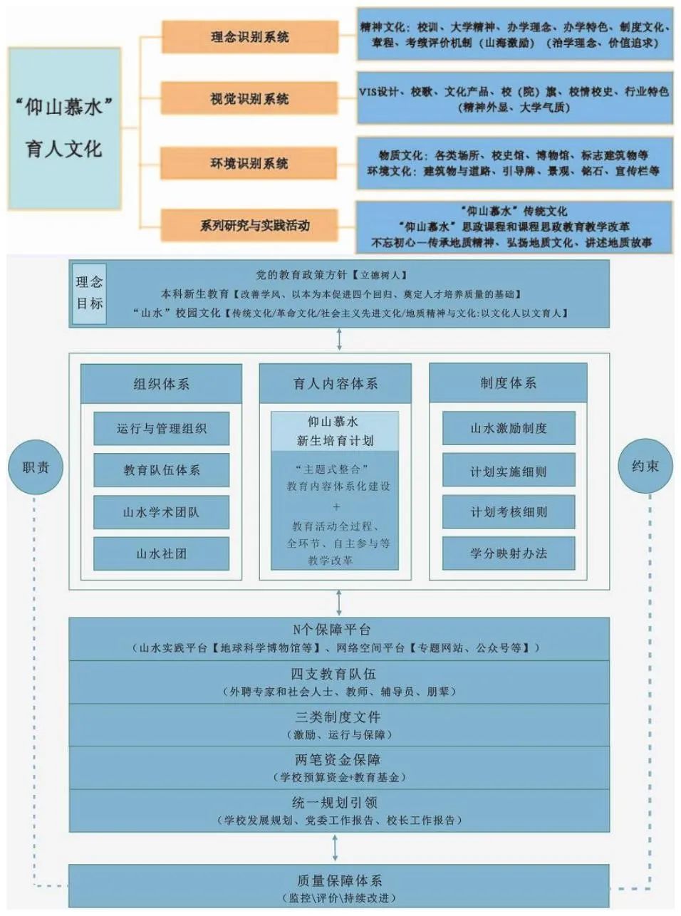 地质工作的性质和特征造就了一代代地质人跋山涉水、寻找矿藏的报国情怀;顶风冒雨、艰苦奋斗的优良品质;脚踏实地、吃苦耐劳的实干精神;勇攀高峰、追求卓越的崇高志向,守山之青、护水之绿的发展理念。这些精神品质在长期的传承、积淀和发展过程中,形成了BB贝博具有深厚底蕴和丰富内涵的山水文化。学校实施“仰山慕水”新生培育计划,大力培育“仰山慕水”育人文化品牌,构建了面向立德树人的“仰山慕水”文化育人体系,该项目获得教育部首批高校思想政治工作精品项目,多次荣获河北省高校思想政治工作优秀案例、校园文化建设优秀成果、宣传思想文化工作创新案例等荣誉称号。
