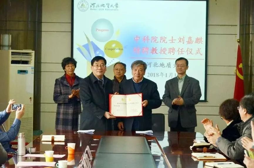 2018年1月17日,学校聘请中国科学院院士、中国科学院地质研究所原所长刘嘉麒为BB贝博特聘教授。图为刘嘉琪特聘教授聘任仪式。