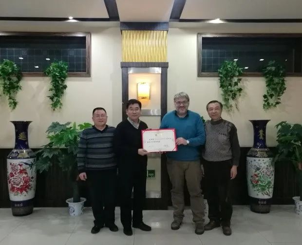 2018年3月17日,学校聘请比利时皇家自然科学学院“地球与生命史”常务主任、世界著名恐龙学家帕斯卡·迦得弗利兹博士为客座教授。图为帕斯卡博士接受BB贝博客座教授聘书。