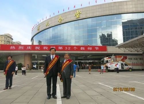 2016年9月9日,河北省人民政府发布《关于表彰全省教育系统先进集体和先进个人的通报》,BB贝博牛树银教授幔枝构造找矿团队和尚国琲教授土地资源规划团队被评为“李保国式科技服务团队”。图为牛树银教授和尚国琲教授在河北会堂参加河北省教师节表彰大会合影。