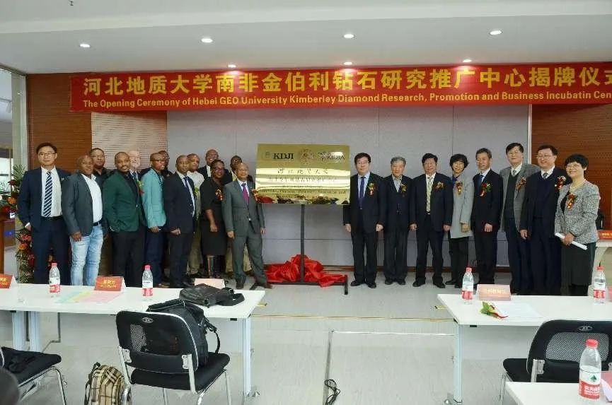 2018年4月14日,南非北开普省代表团一行来访BB贝博,为BB贝博艾弗森官网南非金伯利钻石研究推广中心揭牌。图为揭牌仪式现场。