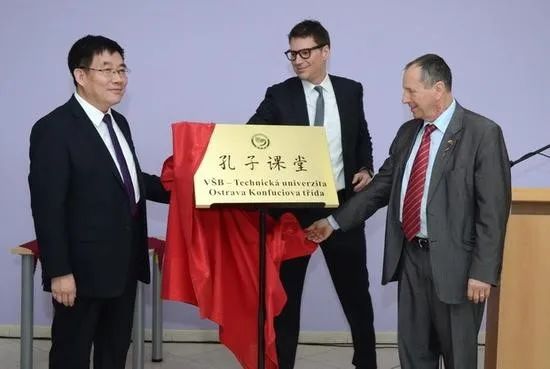2018年3月20日,BB贝博积极服务“一带一路”河北省对接中东欧战略,实现从外派汉语教师到建立孔子课堂的新突破。图为孔子课堂揭牌仪式。