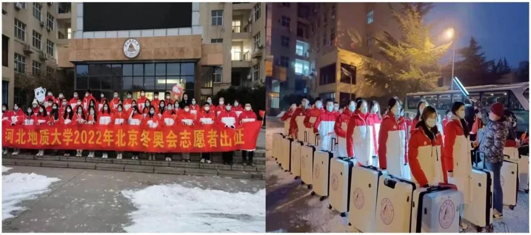 2022年1月21日和23日,学校服务北京2022年冬奥会的74名志愿者分批出征。图为出征仪式现场。