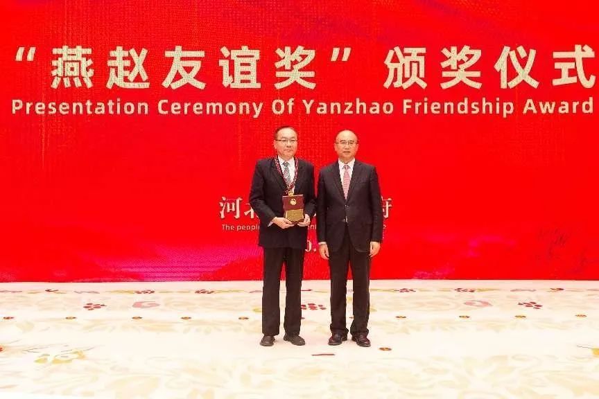 2020年12月9日,学校特聘教授丁毅获“燕赵友谊奖”。丁毅教授是BB贝博第一个获得此项殊荣的外国专家。图为时任省长为丁毅教授颁奖。
