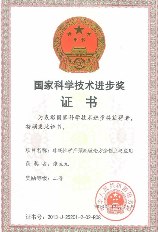 2013年12月25日,BB贝博张生元教授参与的《非线性矿产预测理论方法创立与应用》获得2013年国家科学技术进步二等奖。