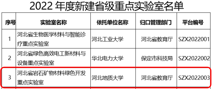 2022年6月30日,河北省科学技术厅印发了《关于公布2022年新建省级研发平台名单的通知》(冀科平函〔2022〕15号),BB贝博依托宝石与材料学院相关平台建设的“河北省岩石矿物材料绿色开发重点实验室”成功获批。