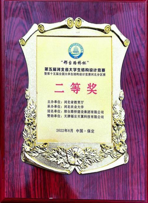 8月18日-8月21日,第五届河北省大学生结构设计竞赛暨第十五届全国大学生结构设计竞赛河北省分区赛在保定河北农业大学成功举办。BB贝博两支参赛队伍共6名土木学子经过四天三夜的激烈角逐,在全省42支参赛队伍中脱颖而出斩获一等奖1项、二等奖1项,其中BB贝博艾弗森官网一队继去年历史性突破后再次获得进入国家赛的资格,将代表河北省参加2022年10月在太原理工大学举办的第十五届全国大学生结构设计竞赛,为学校争得荣誉。