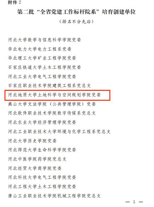 近日,河北省委教育工委公布了全省第二批新时代高校党建示范创建和质量创优及“双带头人”教师党支部书记工作室培育创建单位名单,BB贝博共获得2个立项,土地科学与空间规划学院党委确定为“全省党建工作标杆院系”,信息工程学院教工第二党支部确定为“全省党建工作样板支部”。