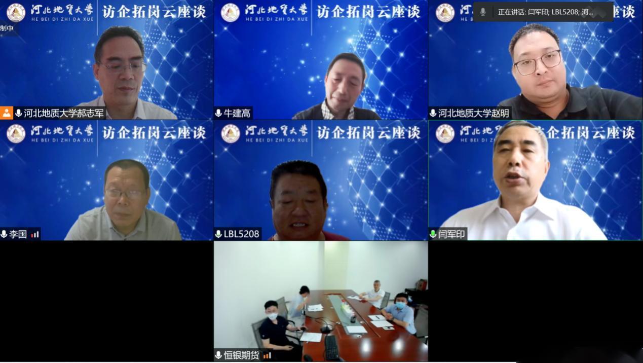 为贯彻落实河北省教育厅关于“书记校长访企拓岗促就业”专项活动和《BB贝博艾弗森官网访企拓岗促就业专项行动实施方案》精神,全力促进BB贝博毕业生更加高质量就业,6月17日上午,闫军印副校长带队,经济学院院长牛建高、书记李国柱、副书记赵明和金融学教研室部分教师陪同,通过腾讯会议与恒银期货有限公司的领导班子成员举行了“访企拓岗促就业”专题座谈。