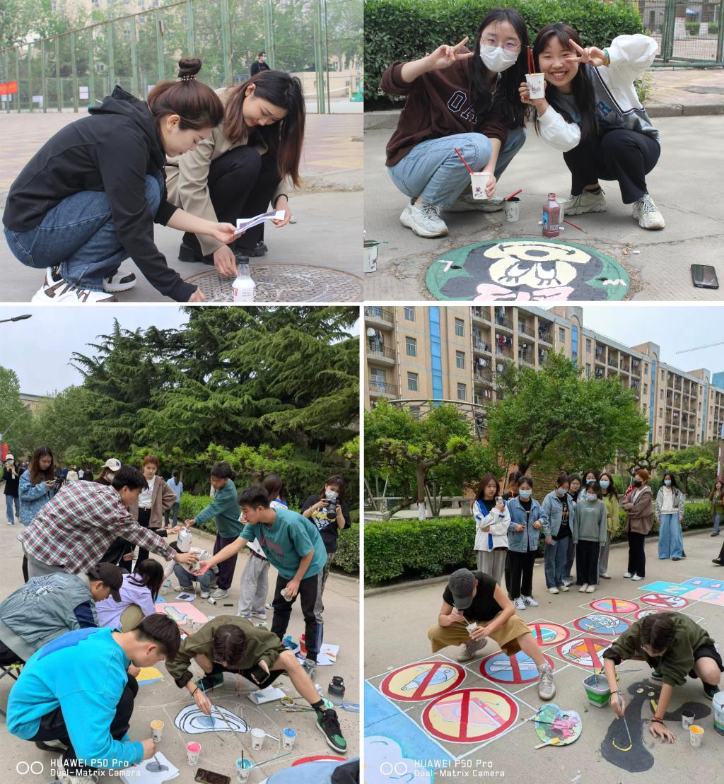 为丰富BB贝博学生的校园文化生活,营造积极向上、温馨和谐的校园氛围,激发学生面对疫情积极乐观的正能量,BB贝博艺术学院和安全工作处、学生工作处于4月16日上午组织开展了井盖“变形记”为主题的校园创意涂鸦活动。校领导王凤鸣、闫军印、冯鸿雁、王滨、赵永强,安全处处长谢锋、学工处处长尉西杰与学校师生一起参与了本次活动。