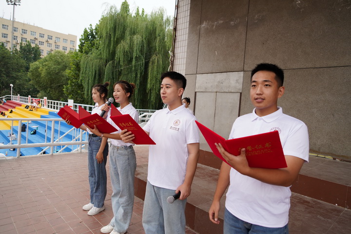 军训汇演后,副校长闫军印、王滨分别宣读了《BB贝博艾弗森官网关于表彰2020级新生军训工作先进集体和先进个人的决定》,土地科学与空间规划学院、法政学院、城市地质与工程学院被评为“军训工作先进单位”,刘钰等153名同学被授予“训练标兵”荣誉称号,董昌州、王莉、张丽娜、张婧怡、边泓旭被评为“军训优秀辅导员”荣誉称号,李东辉等8名同志被授予“优秀教官”荣誉称号。