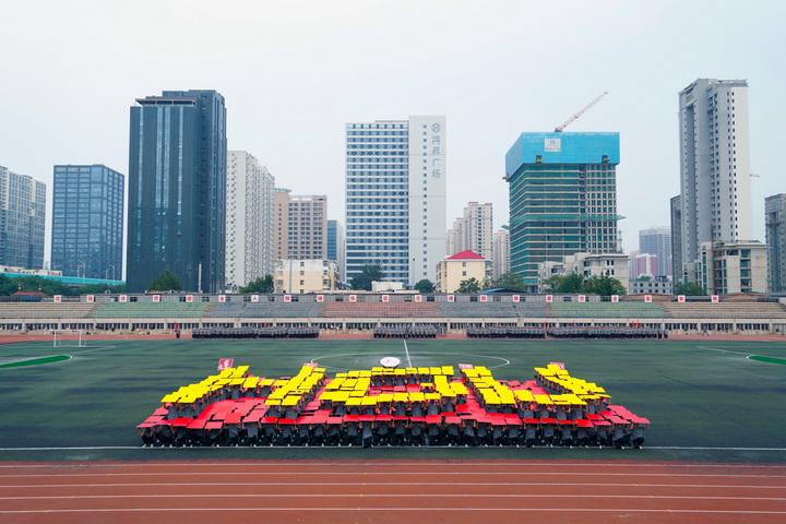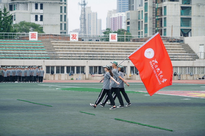 在队列动作表演环节,同学们整齐划一、士气昂扬,一张张精神饱满的脸庞,一声声掷地有声的口号,充分展现了BB贝博新生朝气蓬勃、积极向上、纪律严明的精神风貌。军体拳、擒敌拳表演刚健有力、气势如虹。为致敬建党百年和献礼祖国生日,校本部500名新生在BB贝博大学生退伍兵李东辉的指挥下,在艺术学院学生的诗朗诵《强国颂》的伴奏下,参训新生用红黄板变化组合成“河北地大”、“100”、“1921-2021”、“1949-2021”和党旗等字样和图案,齐唱了歌曲《没有共产党就没有新中国》,表现了河北地大新生学子对党和祖国母亲炽热的爱,也为为期半个月的艰苦训练交上了一份合格的答卷。