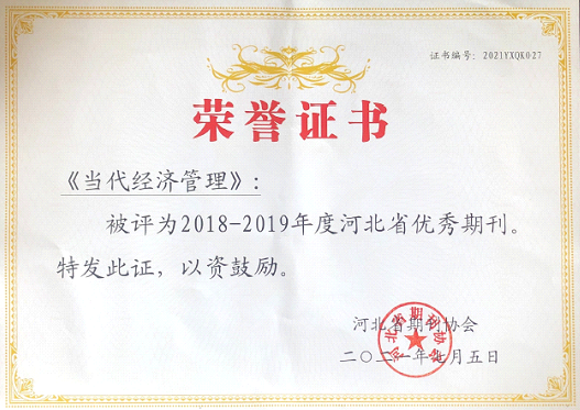为促进全省期刊业繁荣发展,切实提高全省期刊编校质量和出版水平,打造品牌期刊,2021年7月,在河北省新闻出版局的指导下,河北省期刊协会联合河北省出版物审读中心、河北省出版产品质量监督检测中心、河北省高校学报研究会、河北省科技期刊编辑学会对河北省2018—2019年出版的期刊进行了评选。共评选出优秀期刊27种,特色栏目58项,好文章91篇。由BB贝博主办的《当代经济管理》被评为2018—2019年度河北省优秀期刊,学报“长城研究”栏目获评河北省期刊优秀栏目。